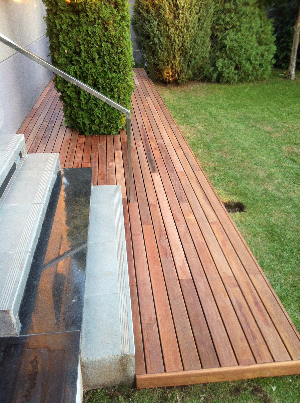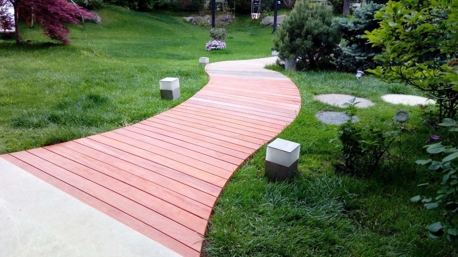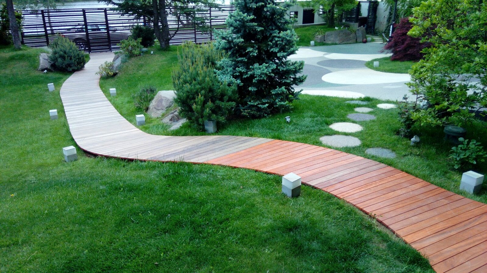 Alee placata cu lemn. O gradina interioara moderna.